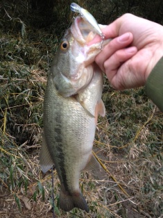 竿がグンっ!としなり40cmほどのバスが釣れました。